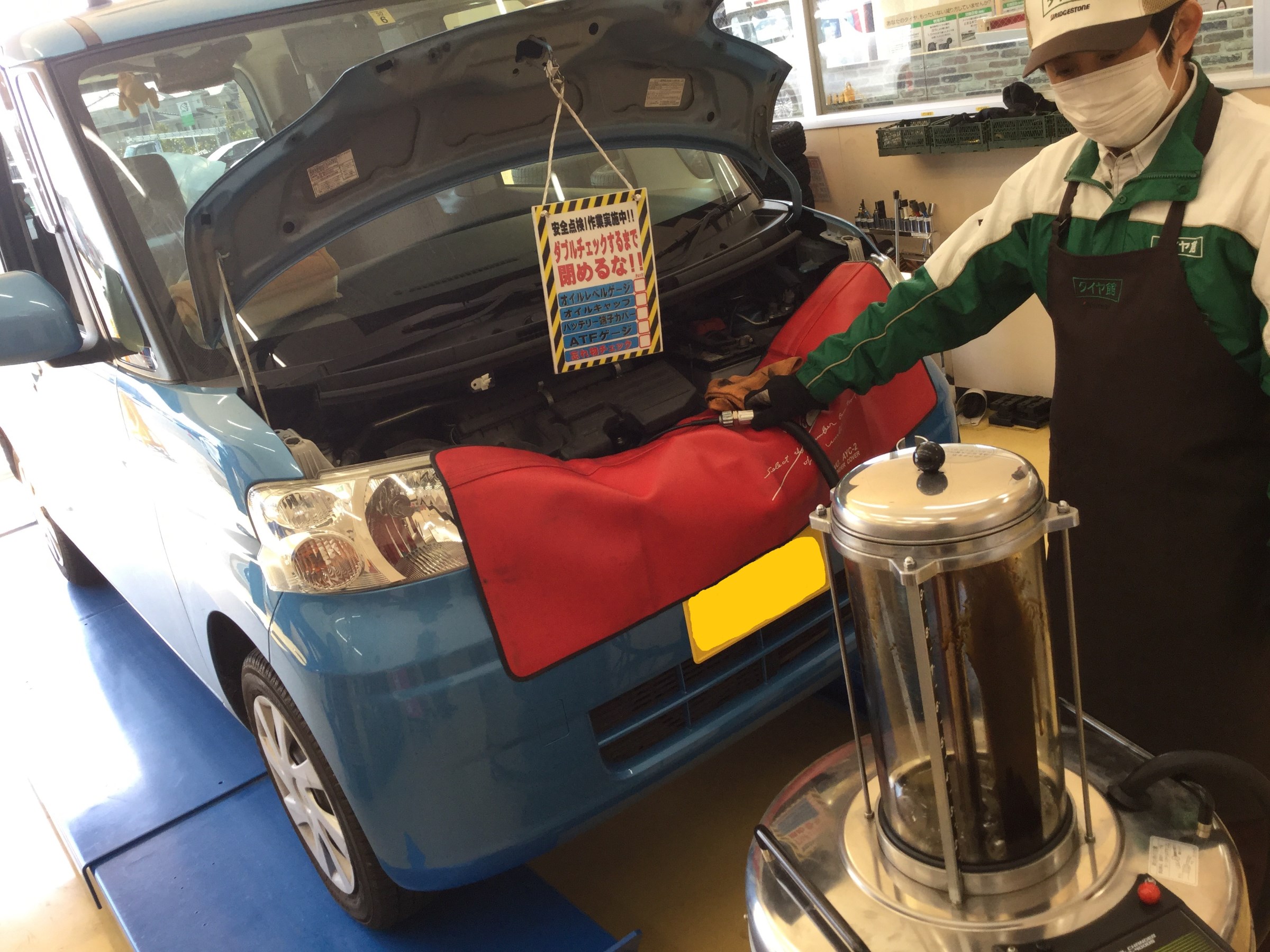 タント 上抜きオイル交換 ダイハツ タント メンテナンス商品 オイル関連 エンジンオイル交換 サービス事例 タイヤ館 イオンタウン稲毛長沼 タイヤからはじまる トータルカーメンテナンス タイヤ館グループ