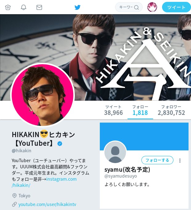 ひーらぎ On Twitter Syamuさんhikakinにフォロバされる